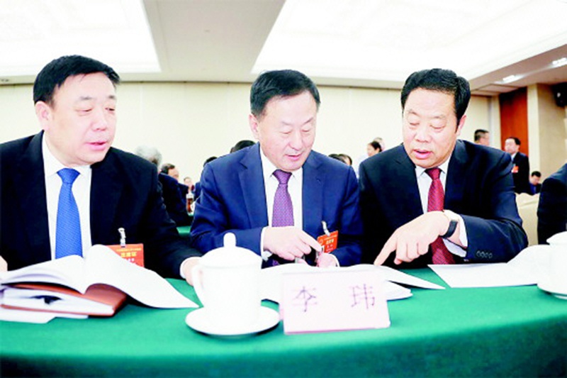 3月12日,李希勇、李瑋、李學海(自左至右)等山東代表團代表,一起審議最高人民法院工作報告和最高人民檢察院工作報告。