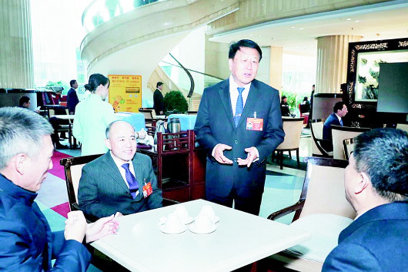 3月12日,李登海(站立者)、宮明杰等山東代表團代表討論有關知識產權保護的話題,認為應把對新品種的保護提升到法律層面,為發(fā)展現代種業(yè)保駕護航。(轉自《大眾日報》手機客戶端)