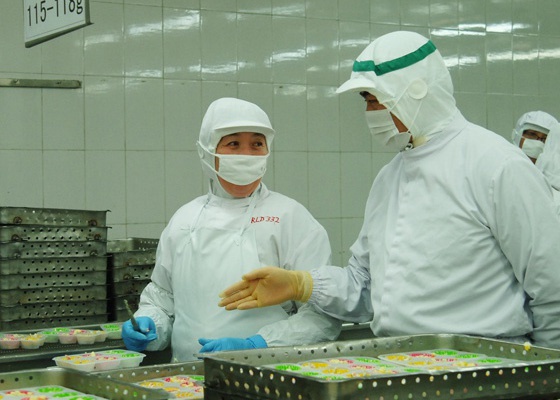 12月13日,陜西省定邊縣政府考察團一行6人在萊陽市副市長陶永偉等人的陪同下,抵達龍大,并對龍大集團速凍蔬菜保鮮產業的相關情況進行了考察。